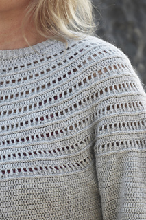 Once the yoke is complete, the body and sleeves are separated and worked top down in plain double crochet rounds. The pattern offers shaping options for a more fitted or relaxed sleeve, as well as optional waist shaping for the body.