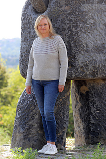 This circular yoke sweater is worked seamlessly from the top down. Short rows at the neckline help raise the back and lower the front for a comfortable, well-balanced fit.