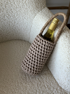 A modern crochet wine tote that combines functionality with elegance. Designed with a clean, minimal shape and sturdy handle, it’s perfect for gifting wine, carrying to picnics, or adding a handmade touch to your table setting. Its textured stitches give it a timeless look, while the reusable design makes it both practical and eco-friendly.