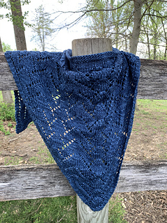 This small triangular shawl is knit from the bottom up. The sample used two skeins in worsted weight, but you could use any weight from lace to aran. For a larger shawl you can add additional repeats of the shawl body. Note: If you increase the size of the shawl you will need additional yarn.