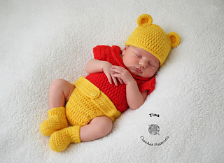 It is a TUTORIAL on how to crochet Winnie the Pooh Baby Set. You will have a quick and fun time crocheting this cute Winnie the Pooh baby set. This cute Pooh baby set will make a great gift for baby shower and Photo Prop!