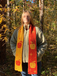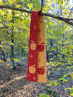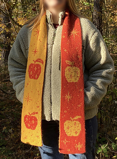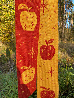 Winter Apples scarf - whimsical fall knitting pattern for big, double-sided scarf, inspired by one of my favorite films.