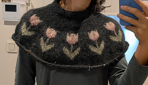 El ‘Winter Bulbs Sweater’ es un patrón fácil para practicar colorwork. Está inspirado en mi jardín de tulipanes que planto y cuido todos los inviernos. Se teje en redondo con agujas circulares y nunca utilizas más de 2 colores a la vez, por tanto es muy fácil de seguir.