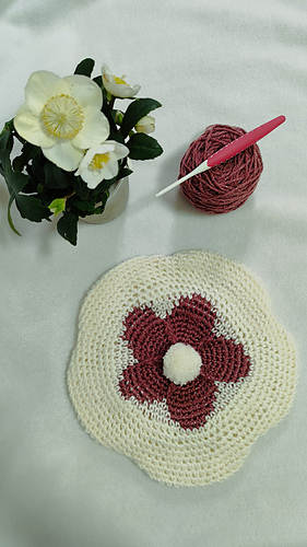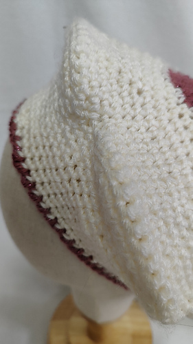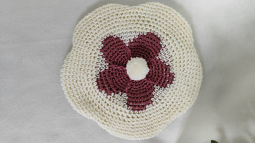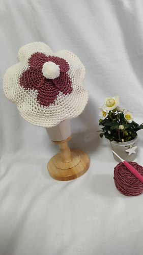 This Winter Flower Beret is inspired by the lovely Helleborus blooms that appear even in the coldest months. The pattern is simple and uses mainly single crochet stitches. The beret is shaped into five large petals, worked in white with a dark-pink center to mimic the look of Helleborus hybridus. A small pompom sits on top like a playful little pistil, and the soft pink edging echoes the flower’s center. You can make it in any color combination you like, making it a cozy winter accessory that works with any outfit.