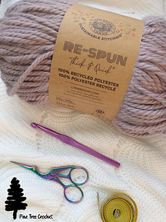 The yarn used in this pattern is Lion Brand Re-Spun Bulky (#6)