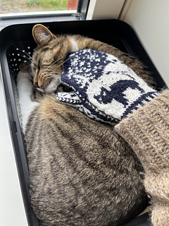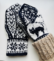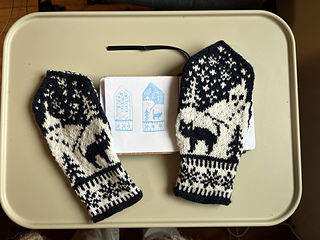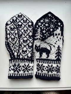 This mitten pattern is inspired by quiet winter evenings in northern Sweden, where the snow glows softly under the night sky. Our cats loved being outside, no matter how cold it was. On snowy mornings, I often found their tiny paw prints scattered across the fresh snow — a sweet trace of their nighttime adventures.