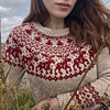 The yoke begins right after the neckline and extends down to the armholes, with a matching fair isle detail at the bottom of the sleeves. Knitted top-down, in the round, and seamlessly, it can easily be tried on along the way to adjust body and sleeve length. An optional set of short rows after the yoke improves the fit.