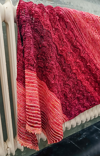 - gauge is not crucial since this is a shawl, but different gauge will affect the size of the shawl and the amount of yarn needed.