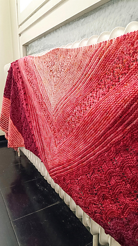 Winter Rose Wrap is a generous size, rectangle shaped, wrap knit with 4 skeins of fingering weight yarn. When you start knitting the wrap, you first knit the centre triangle. Once that´s finished, you will work each side of the wrap separately. Winter Rose Wrap is a special advent collaboration with Beehive Yarns ♥