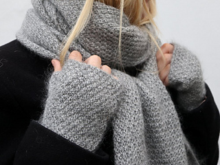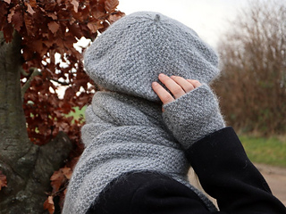 Vintereventyrsættet er et sæt bestående af en moderne pariserhue, halvhandsker med tommel og et langt og blødt halstørklæde – altsammen strikket i dobbelt perlestrik med fine ribkanter.