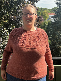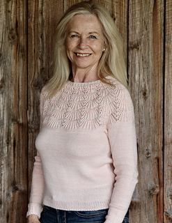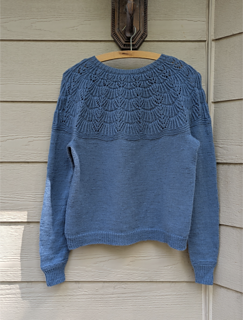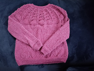 The yoke is comprised of a lace pattern. Charts and written instructions are provided.