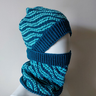 Knitted hat ans snood with Fair Isle stitch. Only 2 colors, fair isle is 18 sts repeat so hat and snood can be adjustable for bigger (adding 18sts) or smaller (leaving 18 sts) sizes.