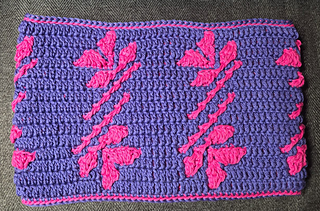 Yarn consumption: Motif colour neon pink: 40 g total / background colour – violet: 50 g – cotton (50 g/125 m). I crocheted with a 3.5 mm crochet hook. You can use any yarn, but keep in mind that the neck warmer will be larger or smaller. It also depends on how you crochet, because everyone crochets differently (loose/tight)! Use a crochet hook that is half a size larger when crocheting mosaic!