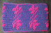 Garnverbrauch: Motivfarbe Neon pink: 40 g Gesamt / Hintergrundfarbe – violett: 50 g –Baumwolle (50g/125m). Ich häkelte mit einer 3,5mm Häkelnadel. Sie können jedes Garn verwenden, beachten Sie nur dabei, dass der Halsschmeichler dann größer oder kleiner wird. Auch hängt es davon ab wie man häkelt, denn jeder häkelt anders (locker/fest)! Nehmen Sie auch eine halbe Nummer höhere Häkelnadel beim Mosaik häkeln!