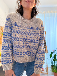 Sample 2 (Size M): ‘Fluff colour’ in the colours ‘601 - grey beige’ (MC) and ‘628 - blue’ (CC) from Lalouknits.