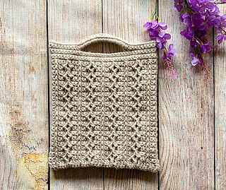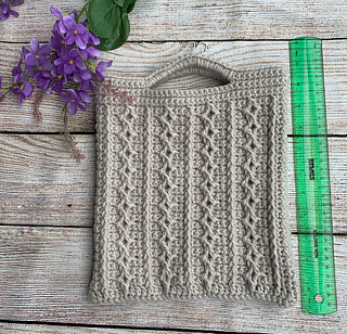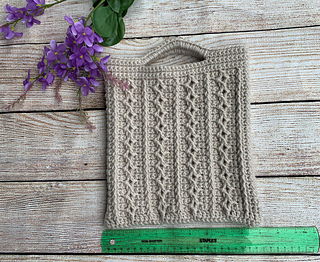 This one skein wonder has a sturdy but attractive composition with an alternating rope and diamond pattern on both sides. It’s perfect for a project or wine bag, or it could be lined and have a strap attached for a super cute purse. It would make an amazing gift or keep it for yourself!
