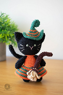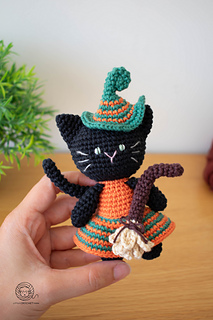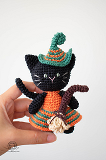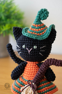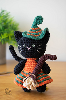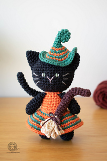 Crochet Witch Cat amigurumi pattern. Halloween cat crochet pattern. PDF