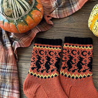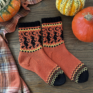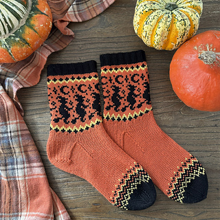 Knitted from the top down, these socks feature an easy-to-knit stranded colorwork pattern that decorates the leg and part of the foot. The heel is a reinforced gusset heel for a perfect fit and added durability.