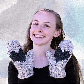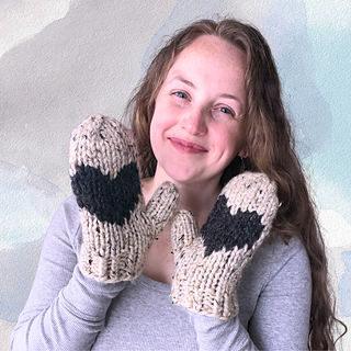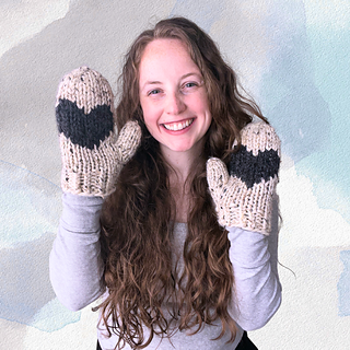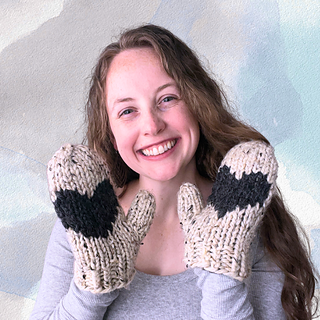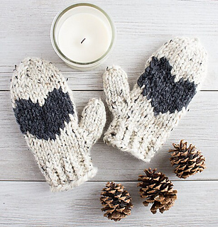 This is a fun, quick chunky knit creating a pair of cozy mittens with a heart on the palm of each hand.