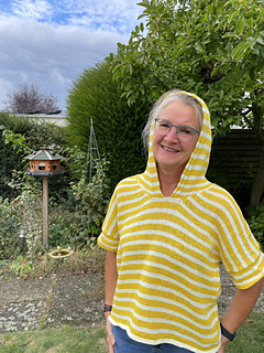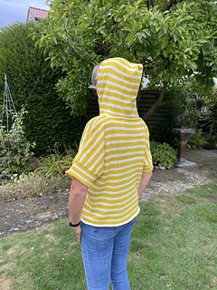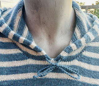 It could even be worked as a normal dropped-shoulder summer shirt only with a neck edge, as the hood is added after everything else has been finished.