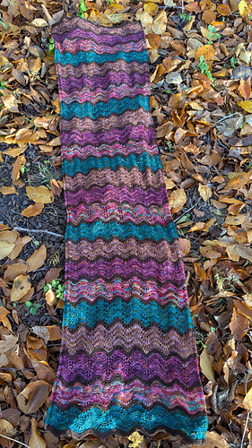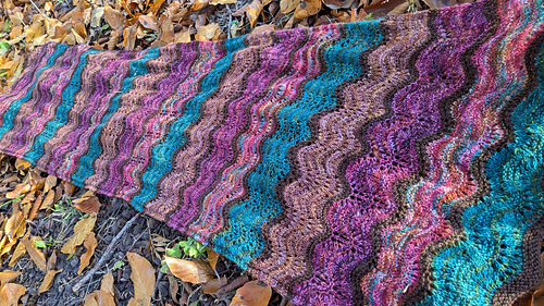 This Advent shawl brings together seven lovely variations of the classic “Feather & Fan” stitch pattern to create one cozy, eye-catching rectangular shawl.