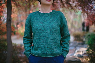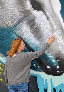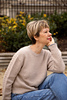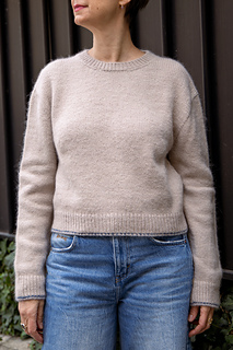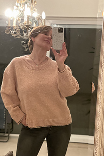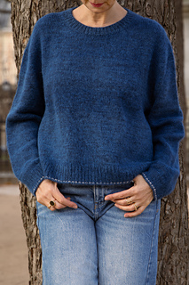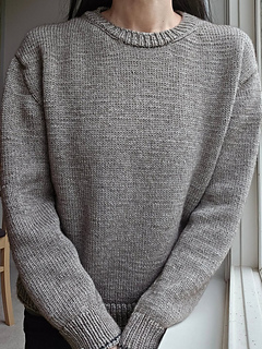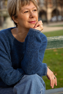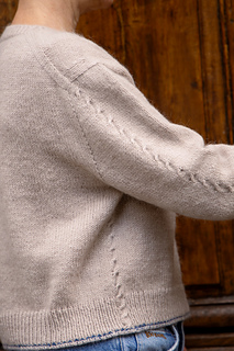 Wolfie is a modified drop shoulder sweater with a clean shoulder line meant to be worn relaxed or oversized. It is knitted top down. It has a European shoulder construction with the upper sleeves being worked at the same time as the front and the back more like a set-in sleeves sweater in the smaller sizes and a modified raglan sweater in the larger sizes than a classic drop shoulder sweater. The sleeves are generous, fairly straight in the smaller sizes but have more decreases in the larger sizes. The body is straight, with the possibility to work modest bust darts to add length to the front. The body is a little short and the sleeves are quite long but this can be adjusted.