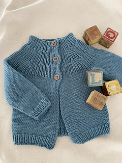 Woodland is a classic cardigan pattern for babies and toddlers. It features a decorative decreasing pattern in a ribbed circular yoke. The front bands are integrated into the knitting, making it a quick and easy knit.