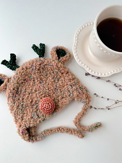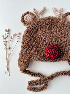 The Woodland Reindeer Hat is a cozy, textured design perfect for advanced beginners. Worked with Woolfolk Flette Bulky held together with a lace-weight mohair, boucle, or slub yarn, it creates a soft, squishy fabric with endless color and texture possibilities. Earflaps, a bold nose, and simple antlers give this hat a fresh, woodland-inspired twist on the classic reindeer look. Clear instructions are included for attaching every feature.