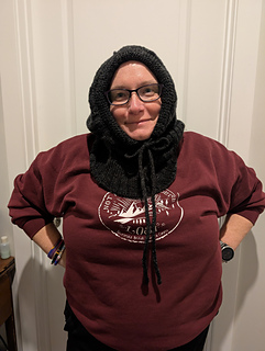Knitting Pattern for men’s hooded snood. English language. Row by row pattern.