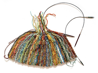 - for shorter scraps version: two circular needles, ideally one longer for main needle (24–32” length) and one shorter for extra needle (16–24” length)