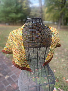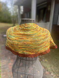 Wrapped in His Wings Shawl was inspired by Psalm 91:4 — “He will cover you with His feathers, and under His wings you will find refuge.“ This shawl was designed as a gentle reminder of God’s nearness and care. Worked in warm, earthy tones with soft texture and drape, it wraps comfortably around the shoulders, echoing the quiet assurance of being held and protected. Worked with a sock set, this makes a fun, quick, and easy knit with endless color possibilities.