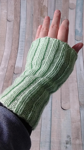 I get really cold hands and wrists, but l find even fingerless gloves to be a bit clumsy when I’m working and I tend to pull my sleeves down over my hands. So I thought I’d make some basic wristwarmers to act kind of like sleeve extenders.