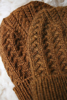 21 sts & 26 rnds in 10 cm (4 in) on 4.0 mm (US 6) needles measured over textured pattern of the wide panel worked in the round after blocking.