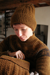 Wusai comes from Ukrainian and means “the one with whiskers”. It is a richly textured design that, in addition to knits and purls, incorporates other simple techniques such as slipped stitches and three-stitch cables.