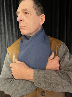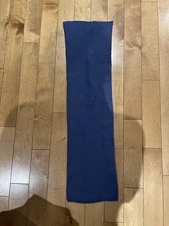 This scarf is a replica of an RAF WWII Air Ministry issued scarf. It is a relatively short tube with closed ends that was likely knit on a circular knitting machine. The end are overlocked by machine. Therefore the recreation will be a little different when hand knit. I do not own an overlocker/serger so I made a change to the ends to compensate for this. This is a very close recreation using more hand knit methods. My method is knit in the round on circular needles and the ends are closed with a blanket stitch.