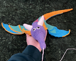 Size of doll can vary depending on the yarn used, but worsted yarn results in a Wrym about 3 ft long.