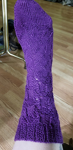 The cables make the wings on the legs and the twisted stitches make the talons on the foot.