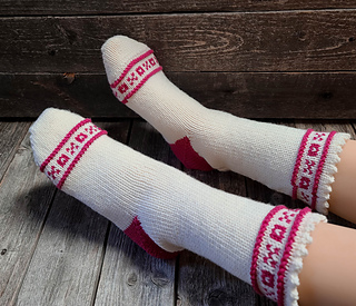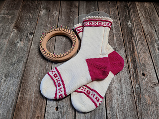 LOOM Knitting Pattern ♥ The XOXO Socks are worked top down or toe up. They feature a picot edge, purl stitches to create texture and a stranded knit motif with a comfort ribbed leg. The heel and toe are formed using the German Short Rows technique however, most heel and toe methods could be substituted.