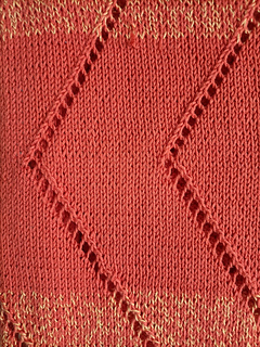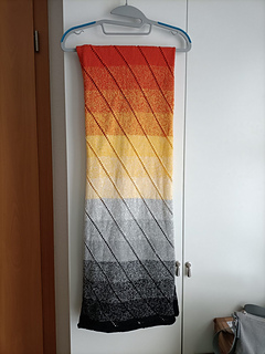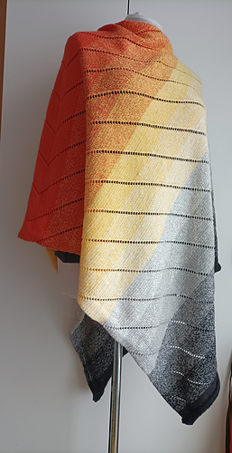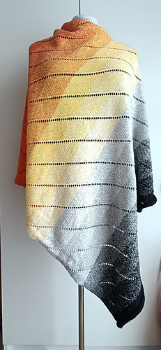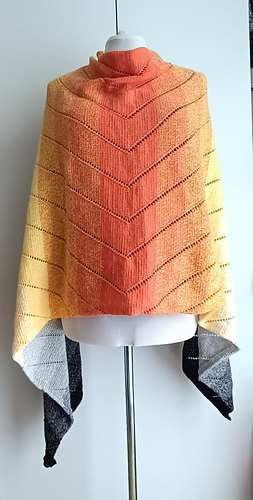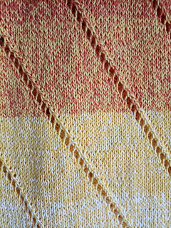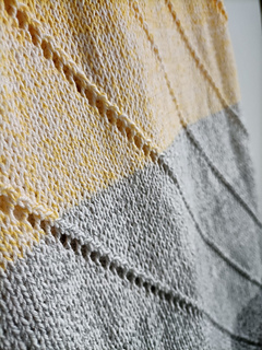 Das Tuch wird im Ajourmuster gestrickt. Die ersten und letzten 10 Reihen, sowie der Rand (je 5 Maschen an beiden Seiten) werden kraus rechts gestrickt (Also die Hinreihen rechts und die Rückreihen links). Die letzte Masche jeder Reihe wird wie zum rechts stricken abgehoben (Randmasche).