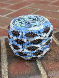 The Pigskin Cozy features easy, colorwork footballs with textured “laces”. Sport it in team colors or go for your favorite color combo! You’ll need just 15 grams of fingering weight for your main/background color and 10 grams for the footballs, which makes it great for small leftovers.