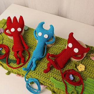 This is a digital bundle with 3 PDF patterns to make adorable yarn-inspired amigurumis — just like in the photos!