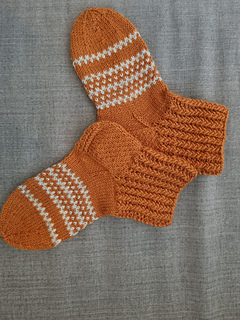 All my knitting patterns are easily adjustable. There are no long threads of yarns to tie in the color pattern. I tie every thread longer than three stitches, so that the socks are nice to wear without getting your toes around loose yarn. The ideas and colors for my patterns come from the Finnish nature around me, and the Finnish knitting traditions. Sometimes the ideas come while travelling abroad.