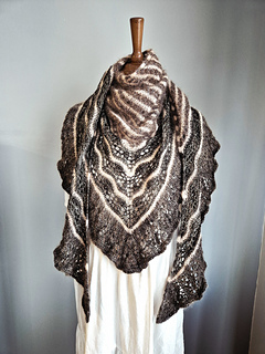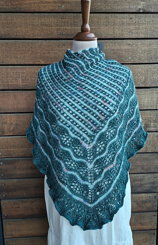 Simple lace stitches that dance together to make a draping shawl to keep you warm.