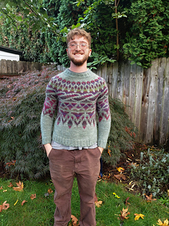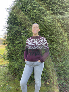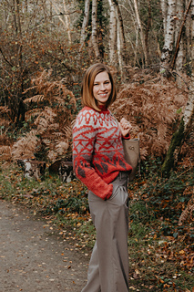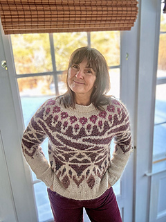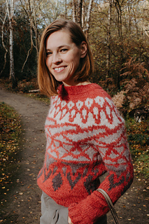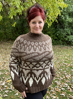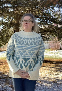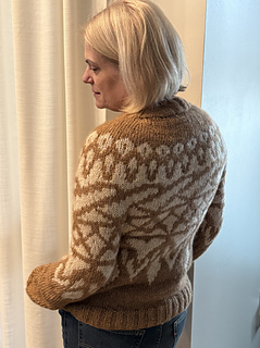 Techniques used: Knitting in the round, short rows, stranded knitting, lifted increases, Ladderback Jacquard.