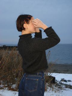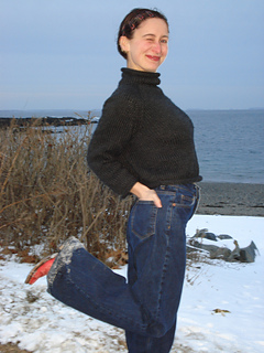 The York Raglan is a bottom-up sweater that is worked in the round. Starting with making the sleeves, then making the body. All three aspects are joined together by working a raglan decrease in the round at four points of the sweater. The garment is completed with a mock turtleneck and a rolled edge.