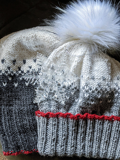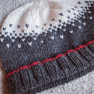This is a DK weight toque inspired by a snowy day sitting in front of the fire. The ribbing is quite stretchy, so the sizing is very forgiving, which makes it a great gift knit. The pattern uses colour work/ 2 stranded knitting and a six panel decrease in a subtle snowflake pattern.