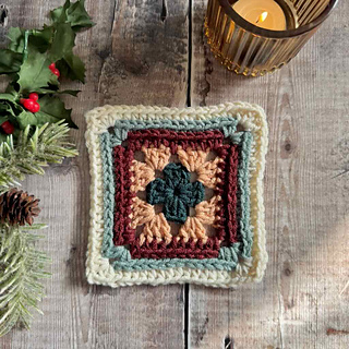 The Yule Log Granny Square begins with a classic granny square center, then gently expands into textured stitches that echo the warm, wood-grained charm of a festive yule log. Each round invites you to imagine the soft glow of holiday lights, the scent of evergreens, and the quiet crackle of a cozy winter hearth.