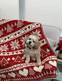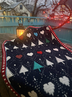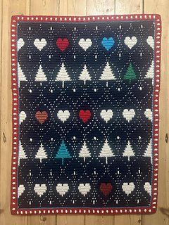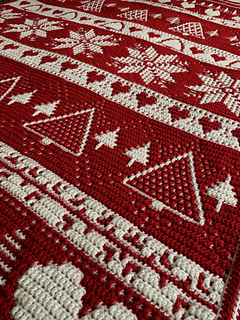 All the designs are worked in repeats of 38 plus 3 stitches, so they all fit together, and you can arrange the different patterns to make a project in any size you like. For example, cushions, rugs, purses and blankets. See the blanket size guide included in the pattern for guidance on the dimensions you want for your Yuletide blanket.