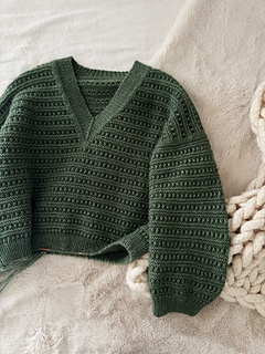 The Yutori Sweater V Neck is an oversized drop shoulder style pullover, textured with a simple pattern that mimics the crochet. It is constructed from the top down and is worked flat and in the round in textured pattern that consists of knit, purls and yarn overs. Pullover features a neat back shoulder detail as well as the neckline and classic 1 x 1 rib around the waist and sleeve cuffs. Pattern does not contain charts, as an additional help a few videos are included in the pattern. 20 to 25 cm / 8” to 10” of positive ease is built in to the pattern. Choose a size based on how much ease you prefer.