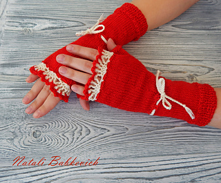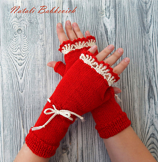 In my native language Zhuravina is meant by “cranberry”. Saturated red color of gloves reminds this berry, isn’t it? But you can choose any colors of a yarn to knit these fingerless gloves!